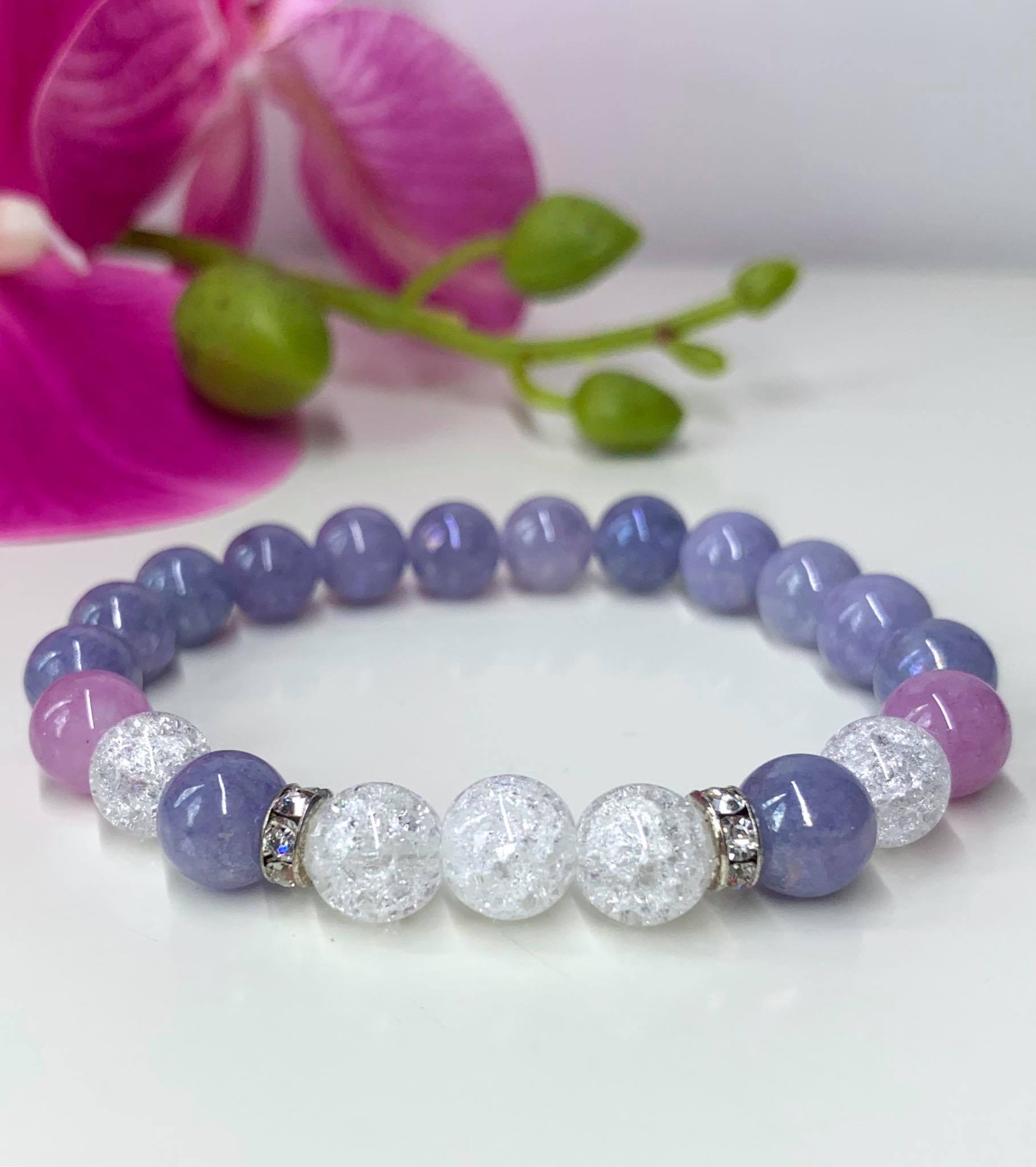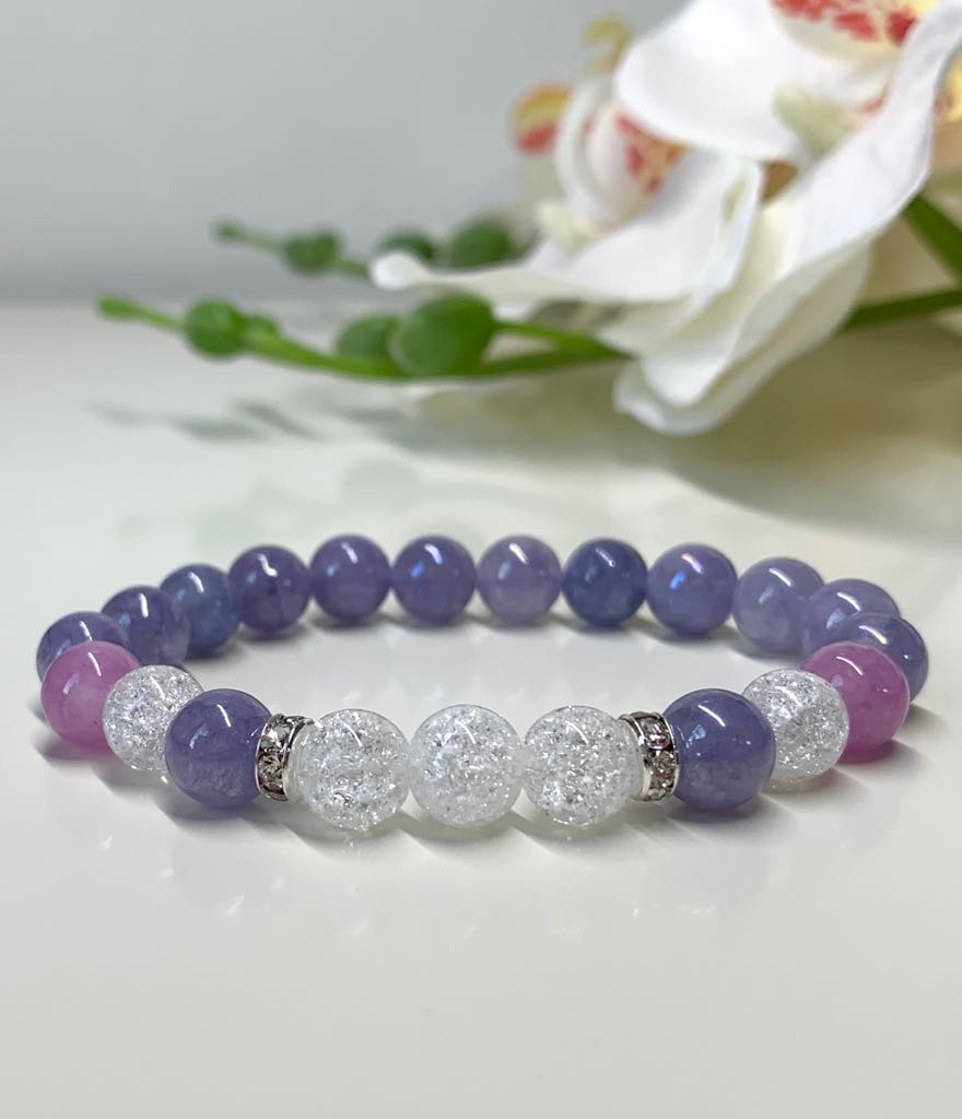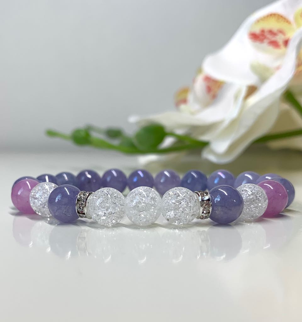 Angelit (Angyalkő) & Hegyikristály Ásvány Női Karkötő (Kék Rózsaszín)