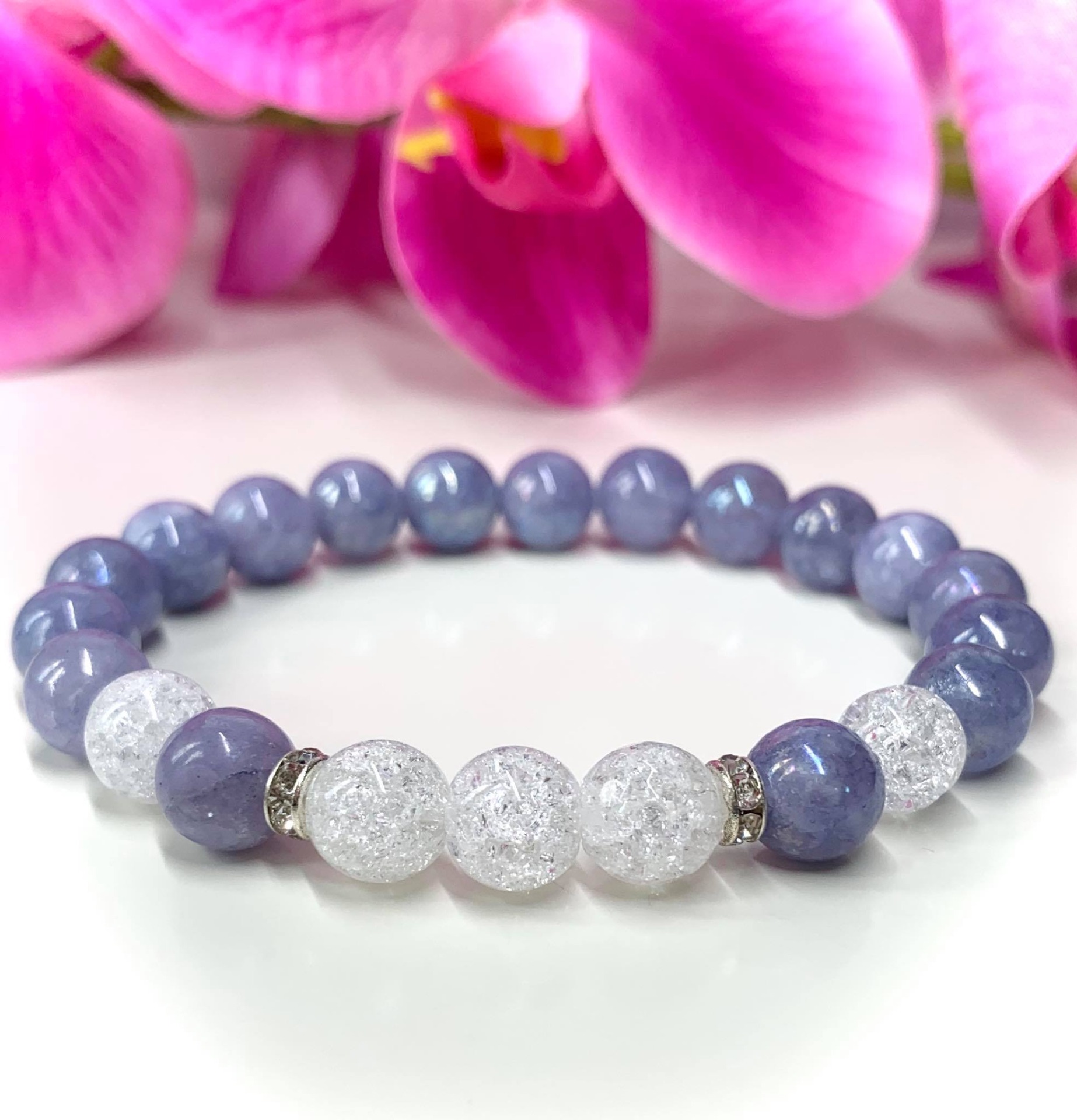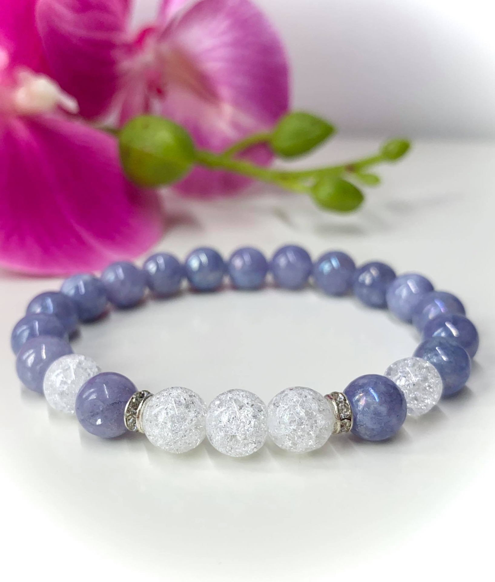 Angelit (Angyalkő) & Hegyikristály Ásvány Női Karkötő (Kékes lila)