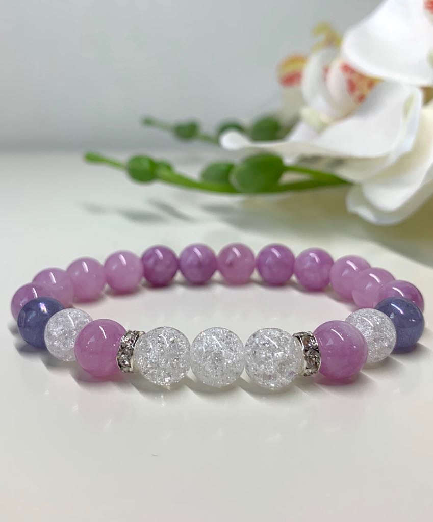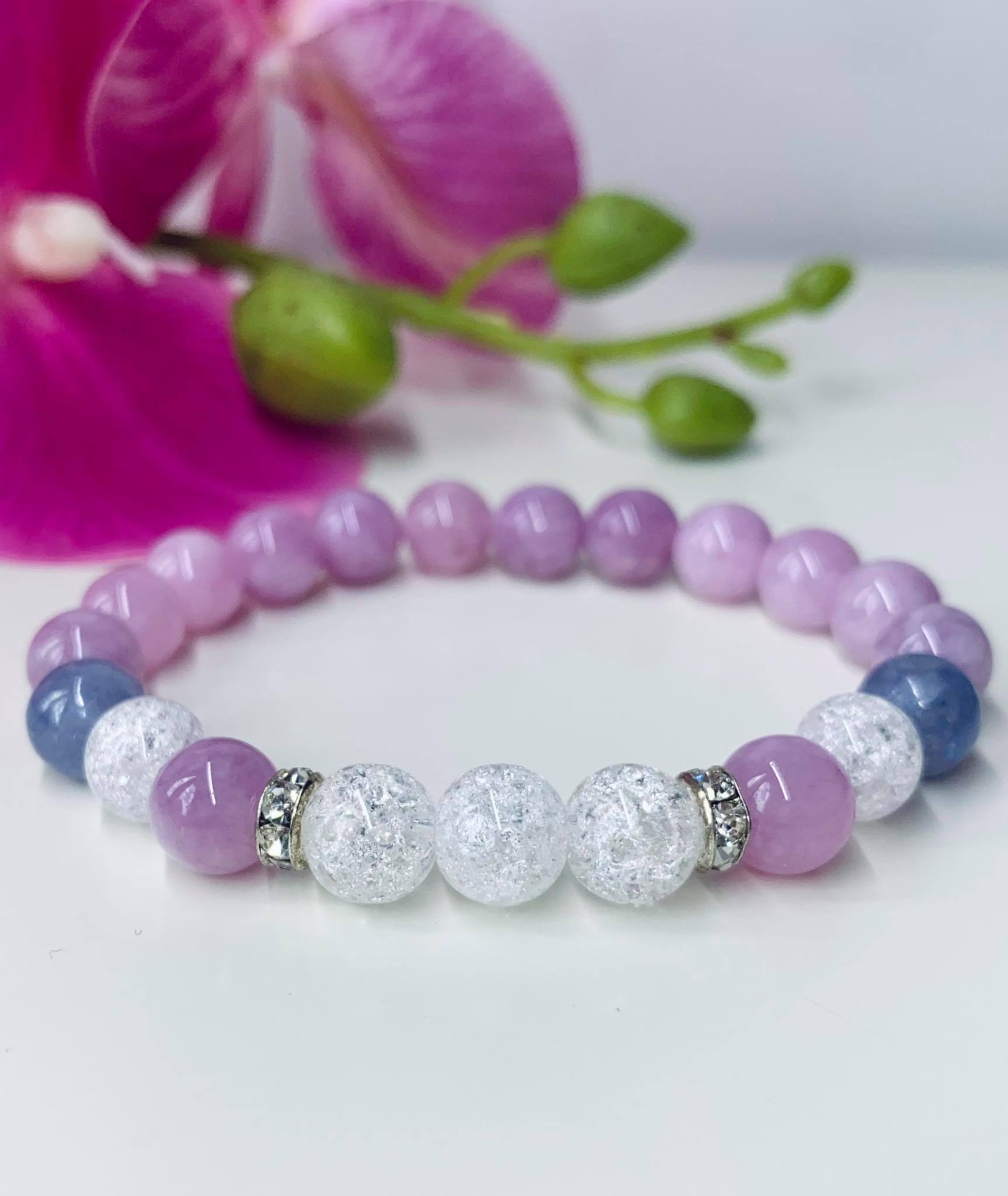 Angelit (Angyalkő) & Hegyikristály Ásvány Női Karkötő (Rózsaszín-Kék)