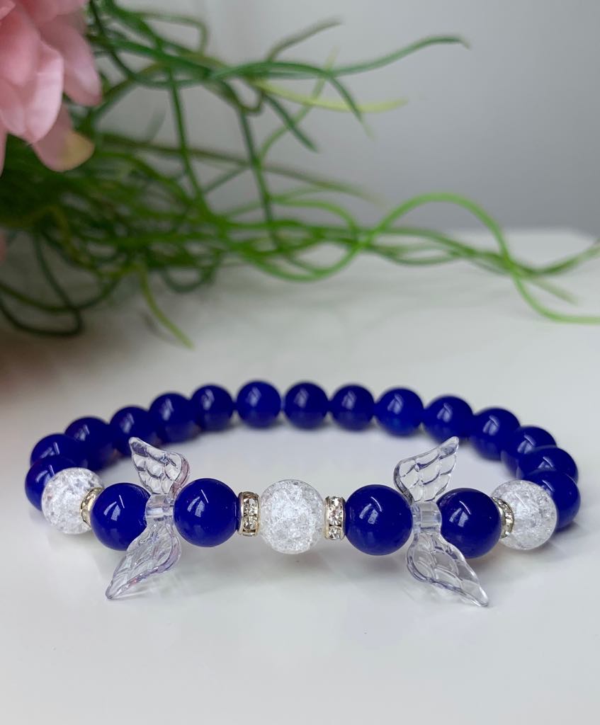 Angyalszárnyas Kék Jade & Hegyikristály Ásványos Karkötő