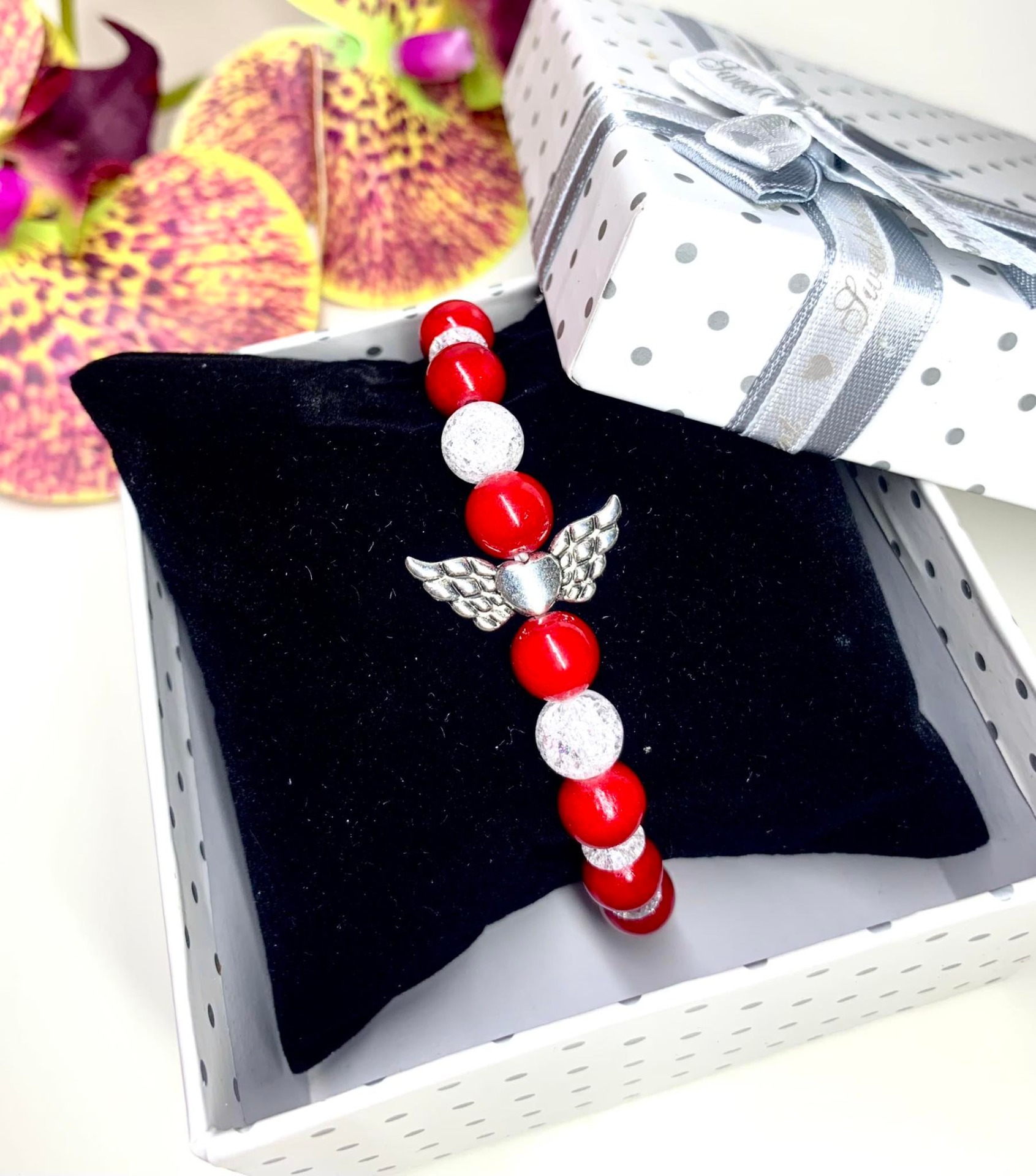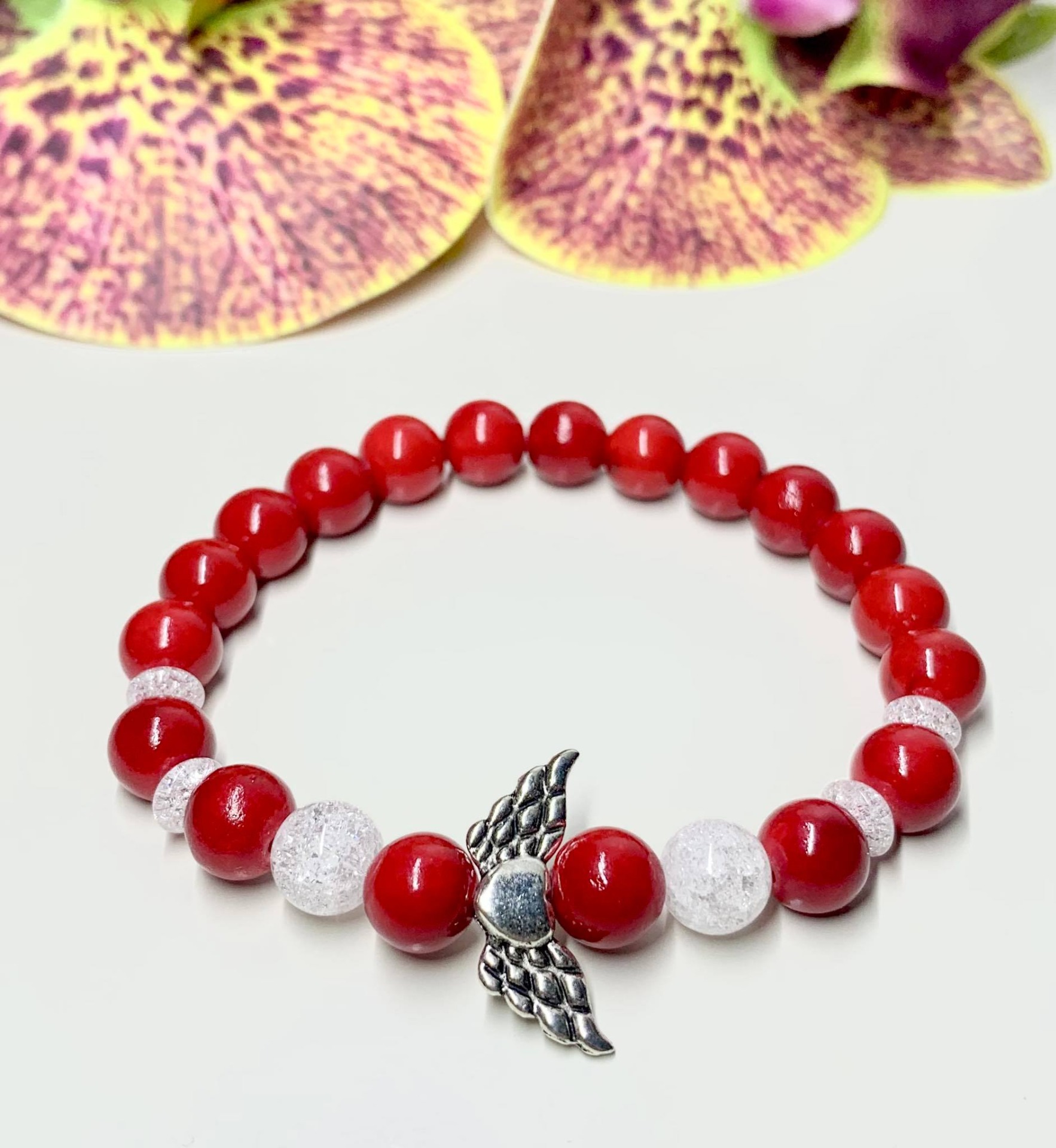 Angyalszárnyas - Piros Jade & Hegyikristály Ásvány Női Karkötő