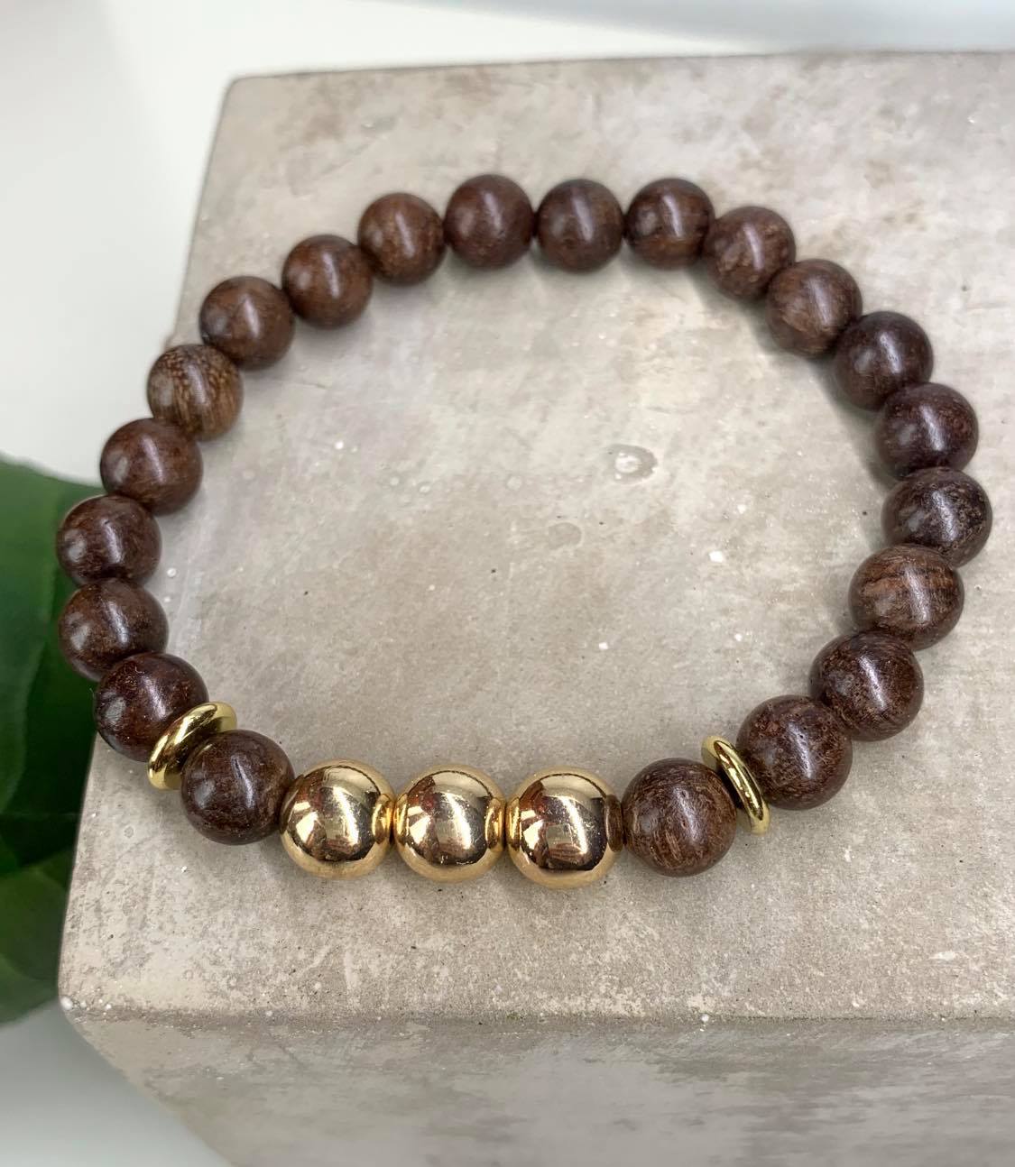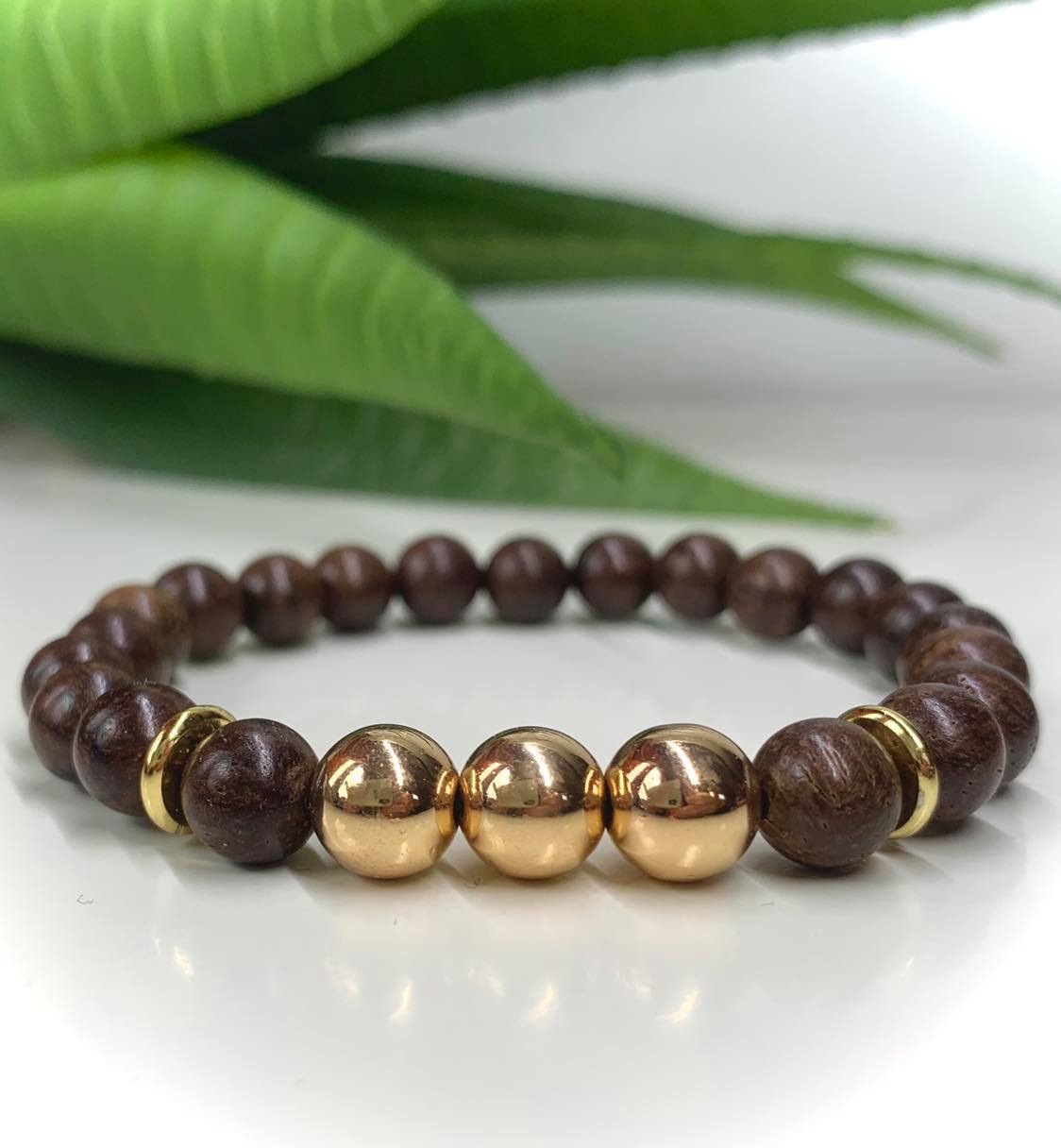 Bambusz Ásvány Karkötő, Arany Hematittal díszítve