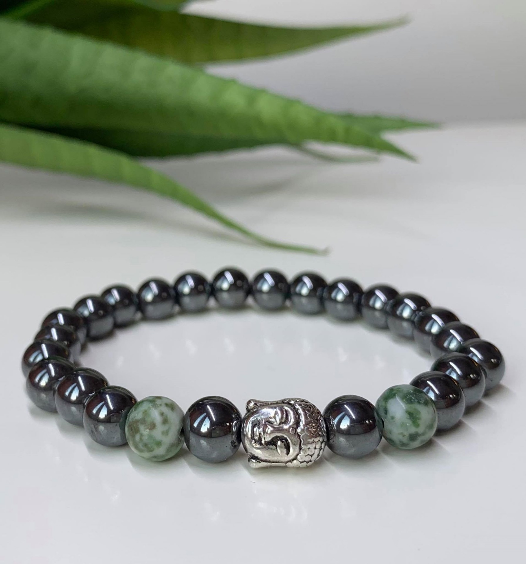 Buddha karkötő - Hematit és Moha Achát Ásványból