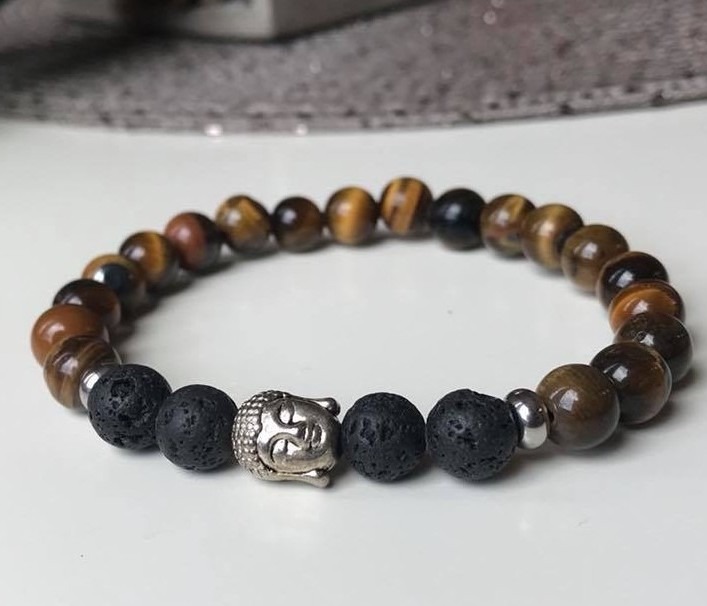 Buddha karkötő - Tigrisszem és Lávakő ásványból készült férfi karkötő