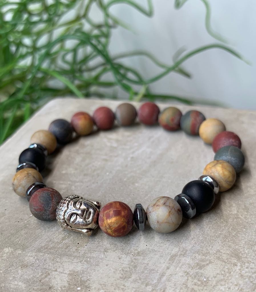 Buddha / Picasso Jáspis Ásványos Karkötő