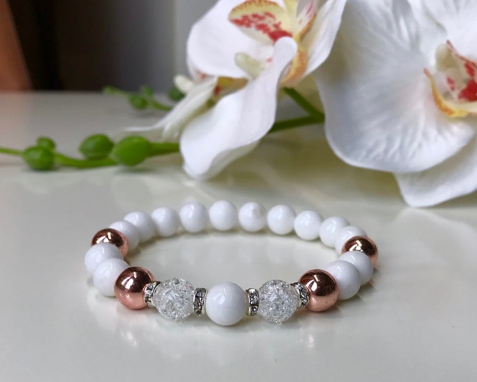 Fehér & Rose Gold -Ásványos Karkötő