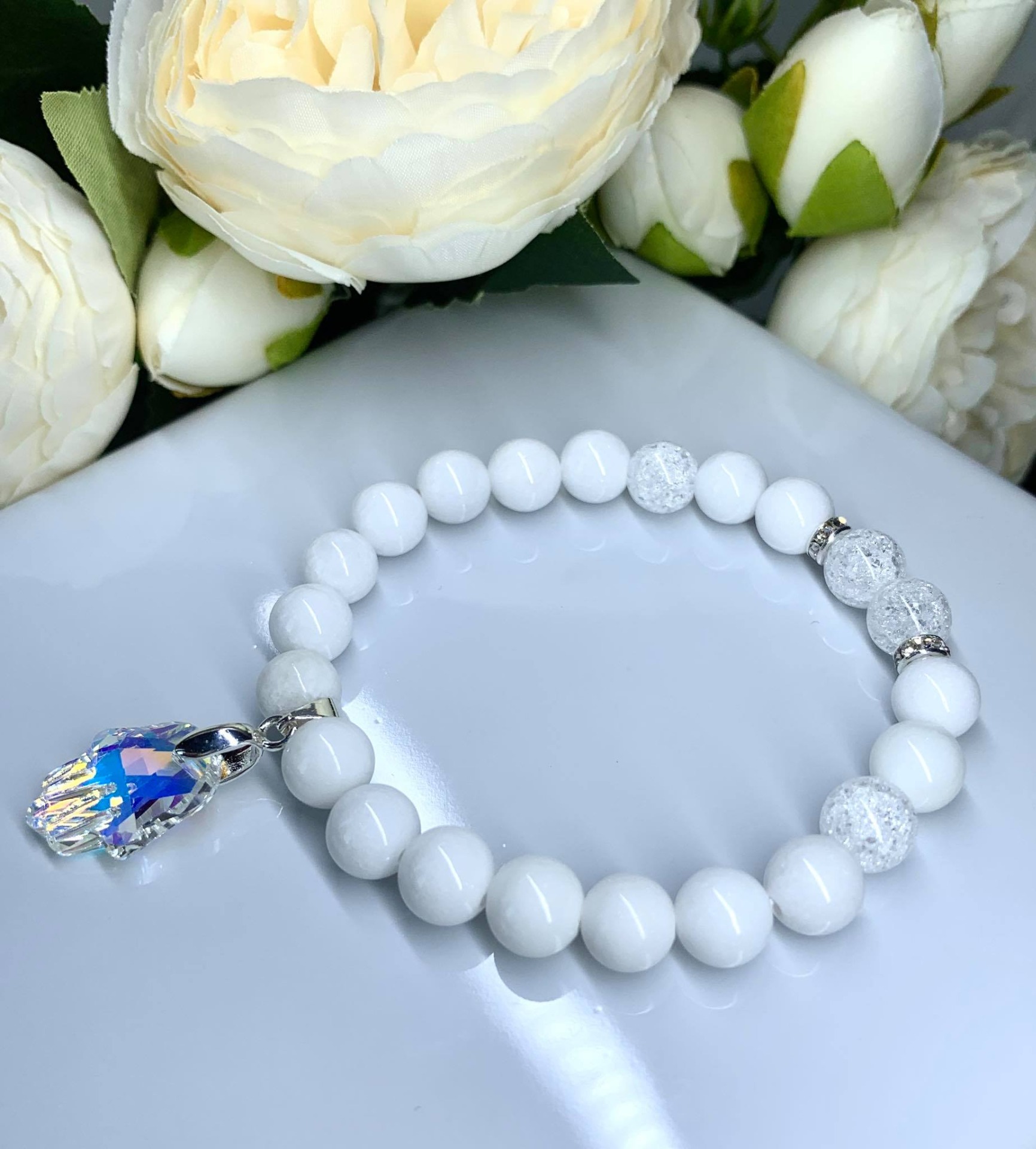 - Ásvány: Fehér Jade és Hegyikristály (roppantott)