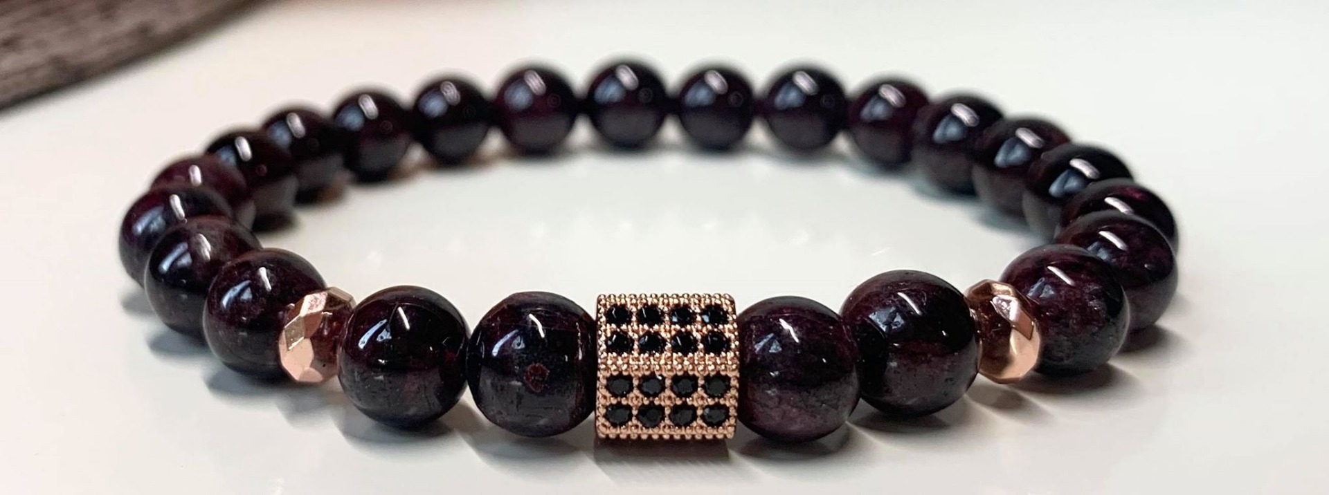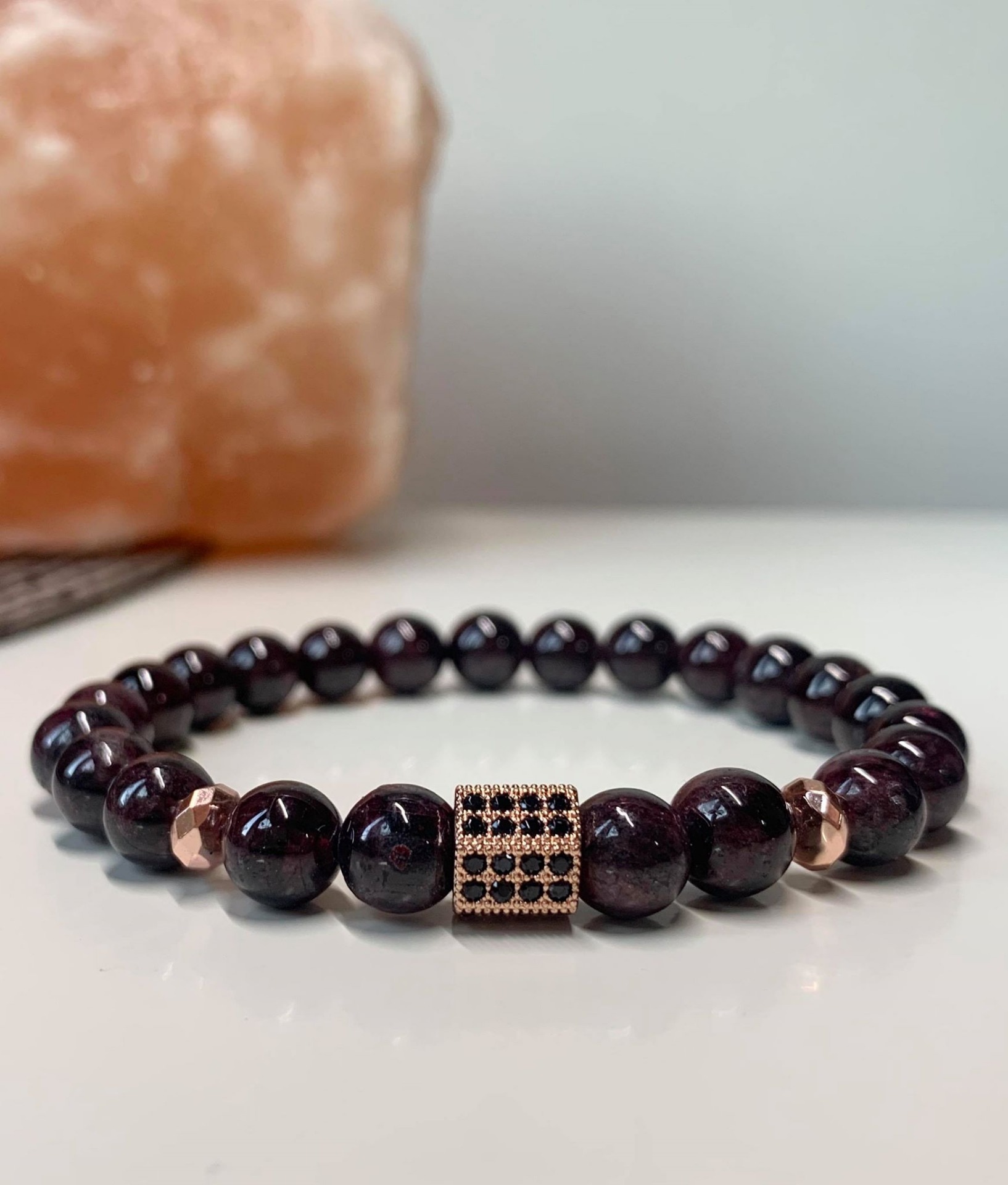 Gránát Ásványos Karkötő- Rose Gold Cirkon köves díszítéssel