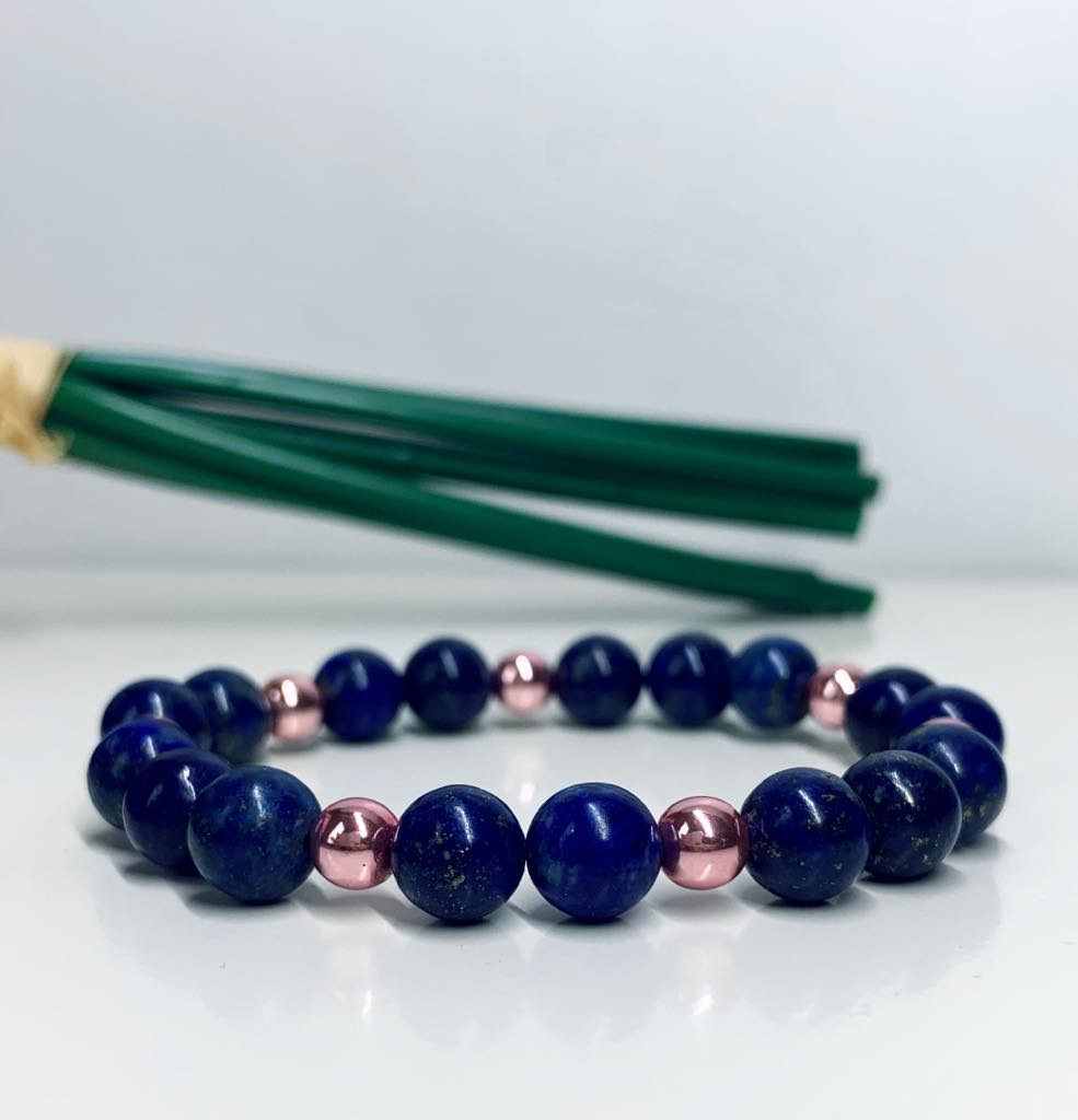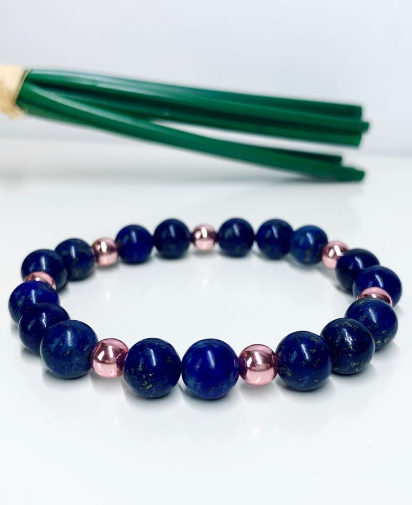 Lápisz lazuli Ásvány Karkötő, RoseGold Hematit ásvánnyal díszítve