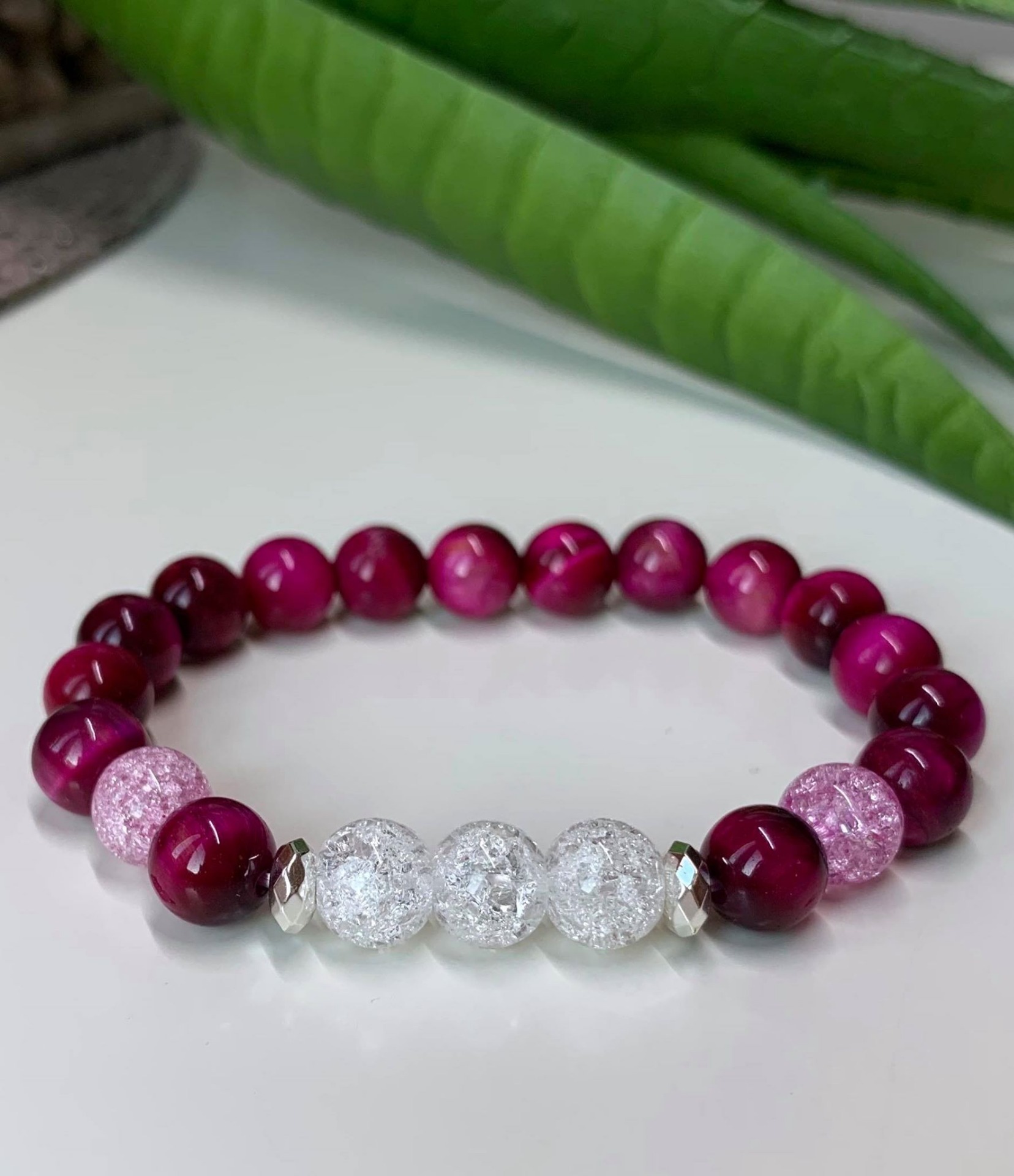 Magenta Tigrisszem & Hegyikristály Ásvány Női Karkötő