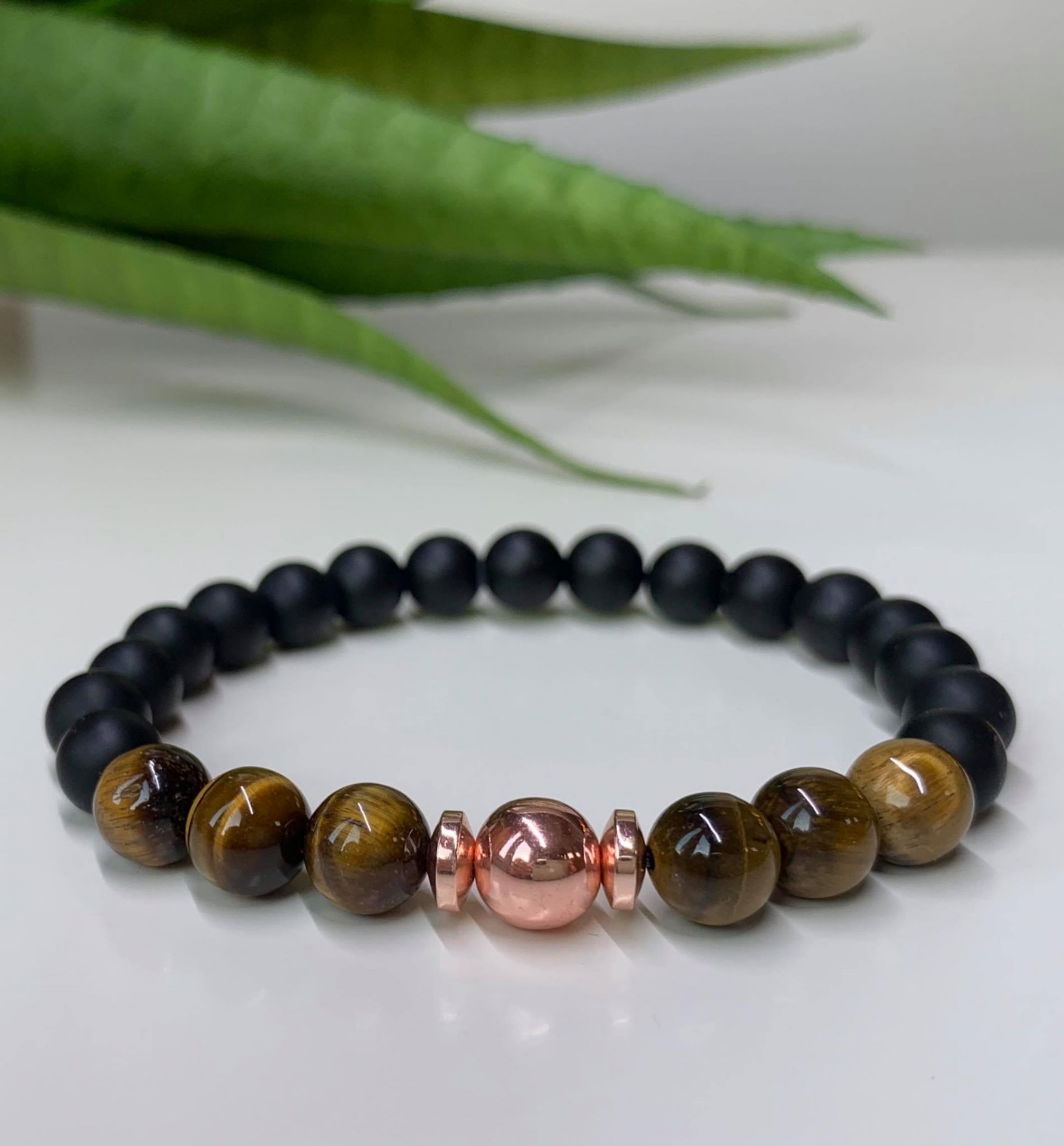 Matt Fekete Achát & Tigrisszem Ásványos Karkötő - RoseGold Hematittal díszítve