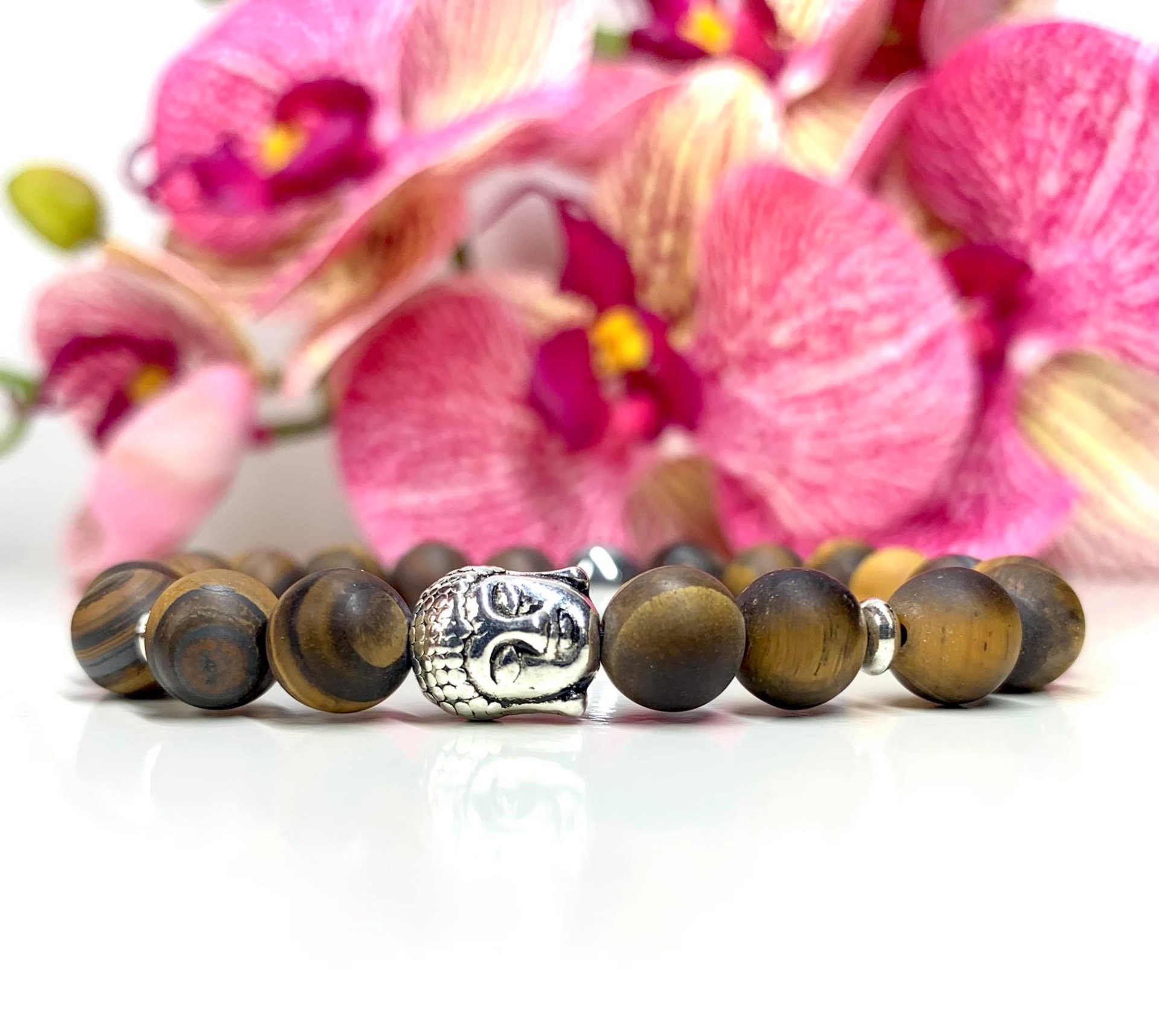Matt Tigrisszem Ásvány Karkötő / Buddha díszítéssel