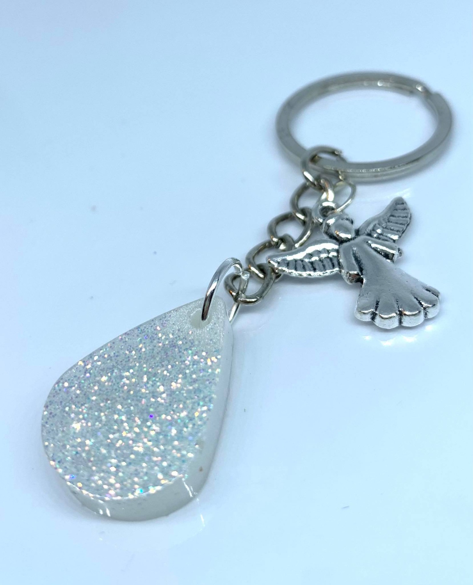 Műgyanta kulcstartó - csillámos csepp,angyalkával 3