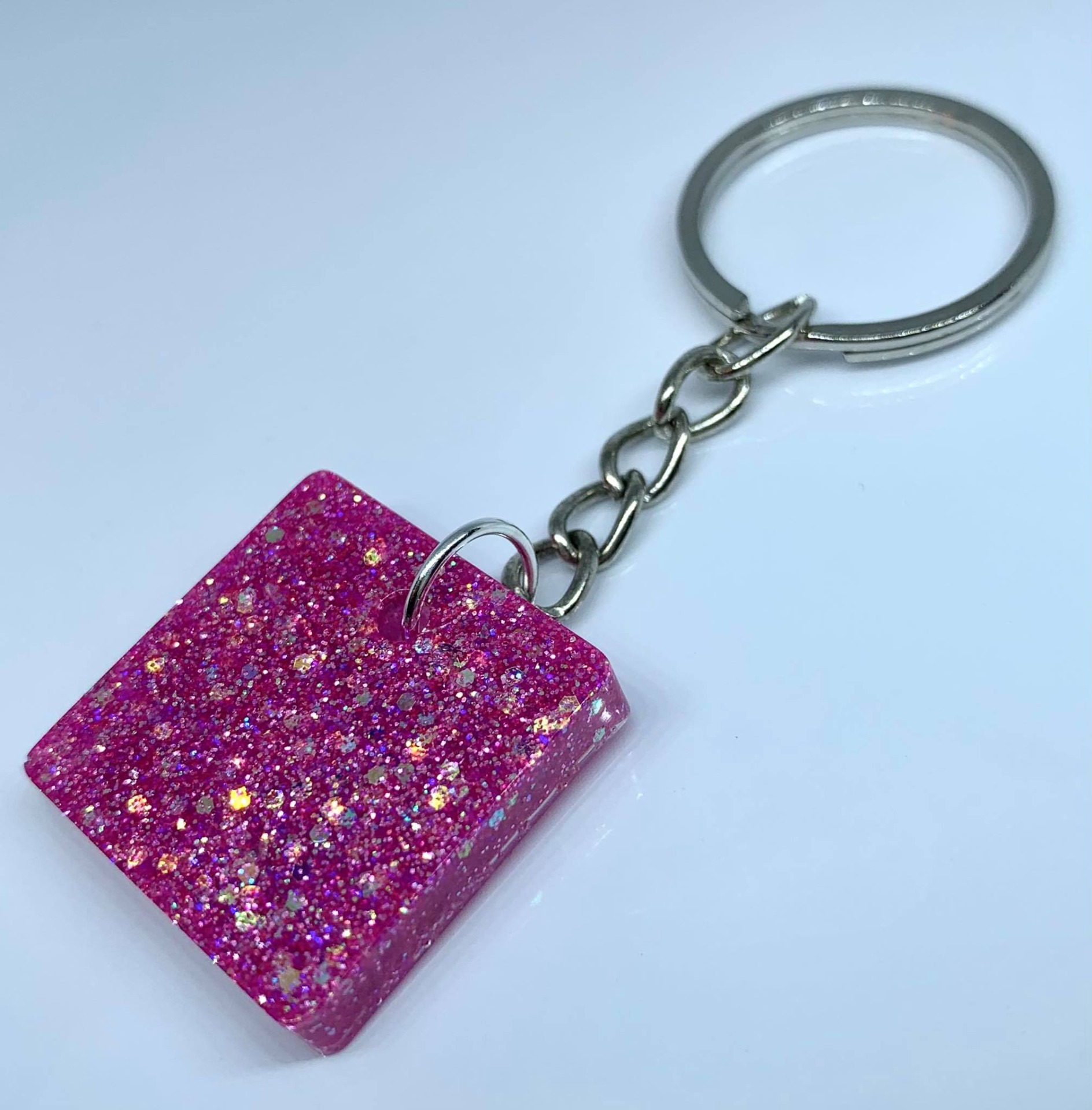 Műgyanta kulcstartó - Rózsaszín kocka 1