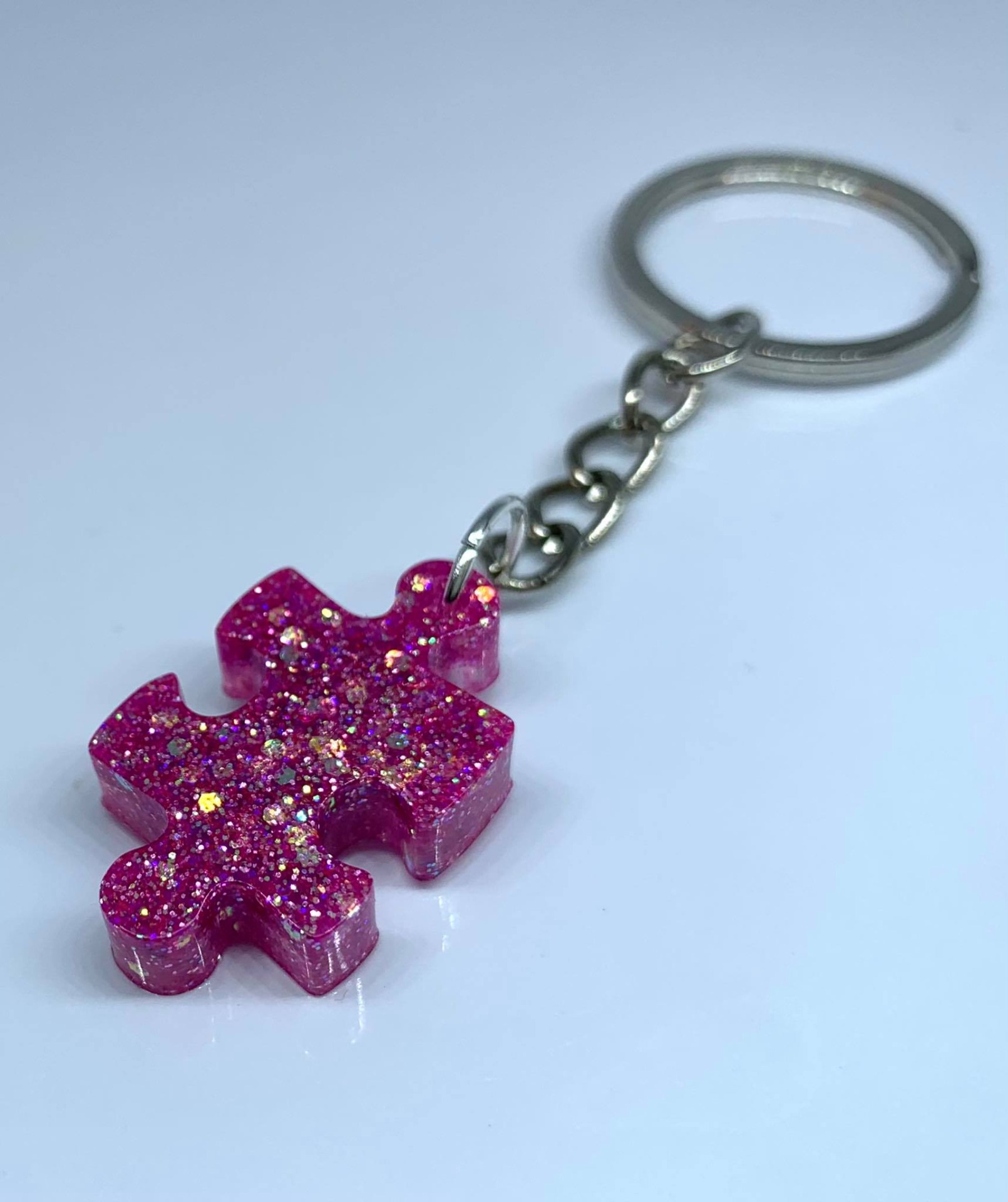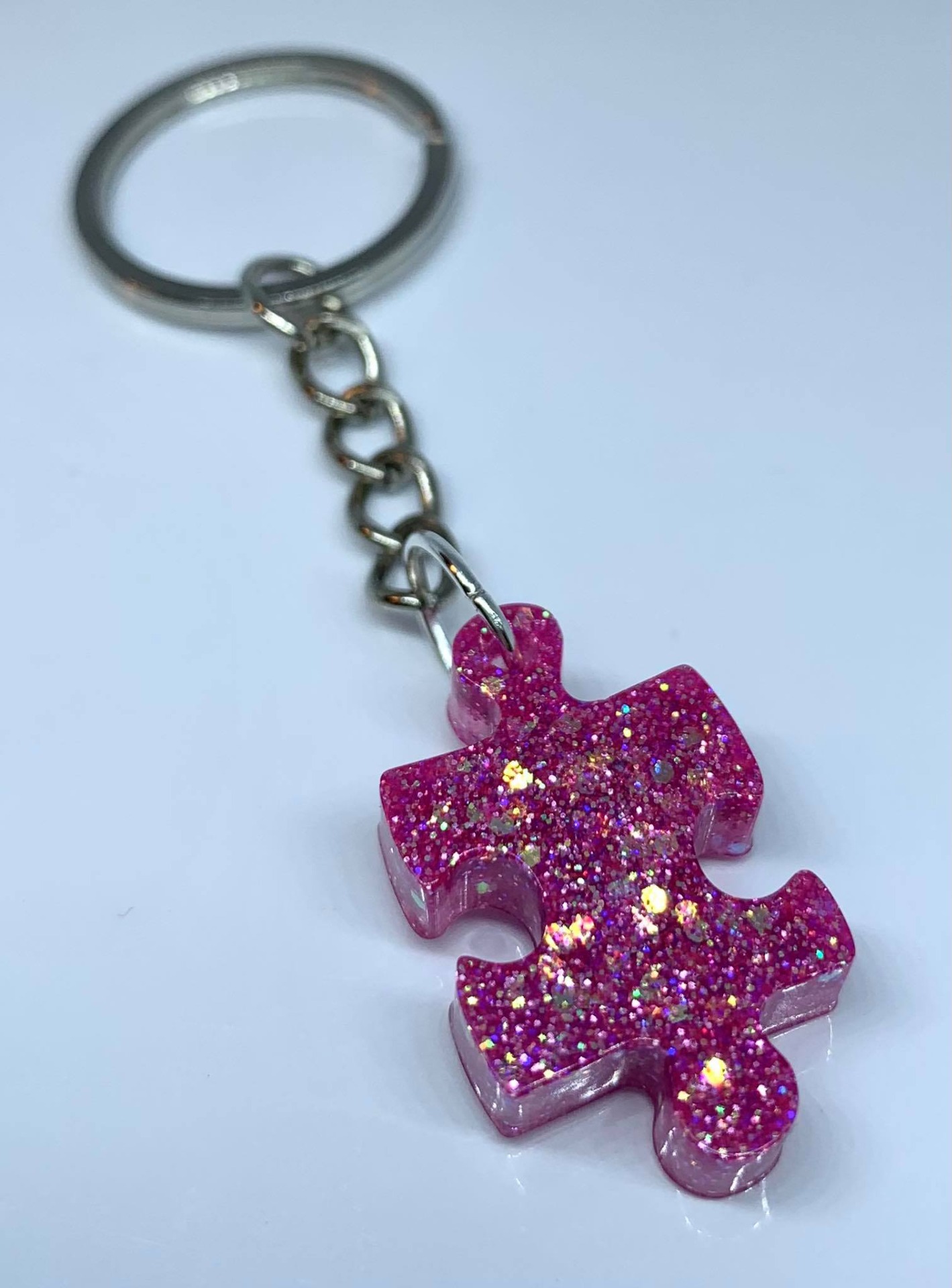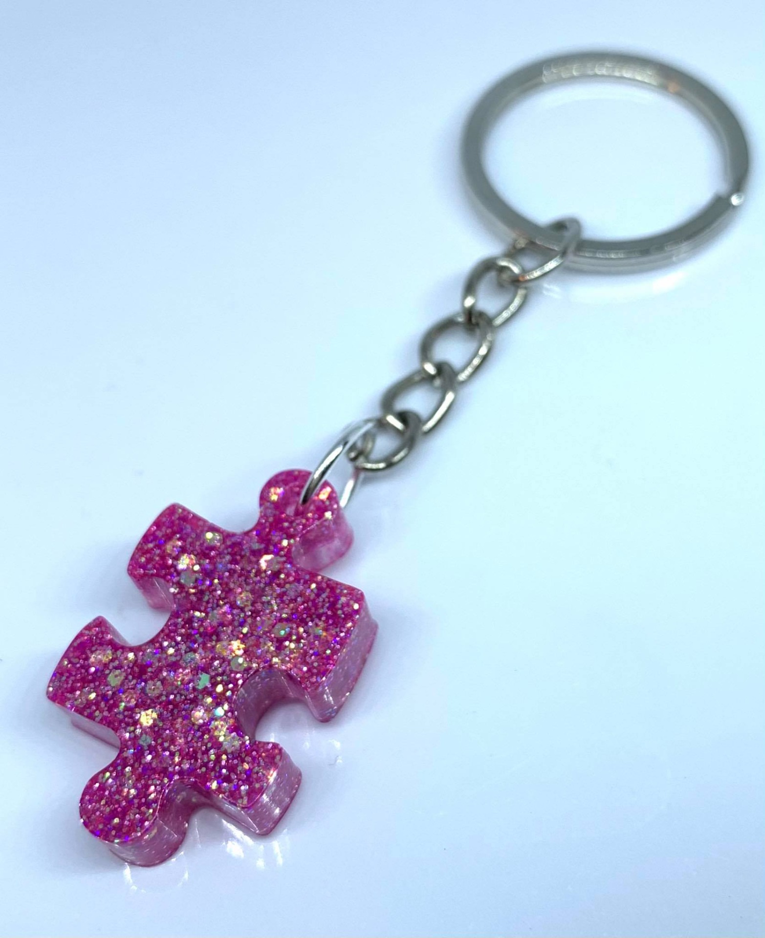 Műgyanta kulcstartó - Rózsaszín puzzle 1