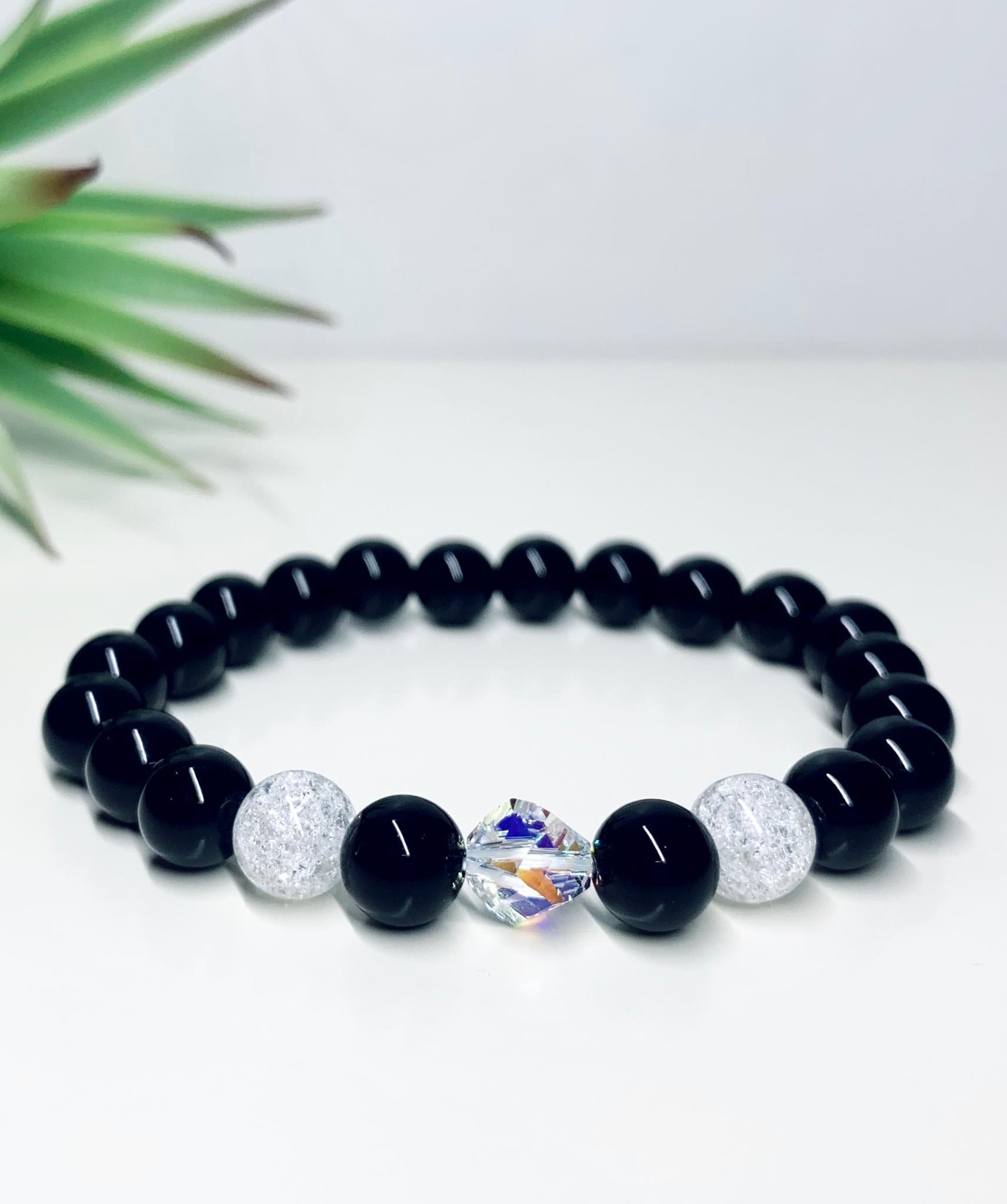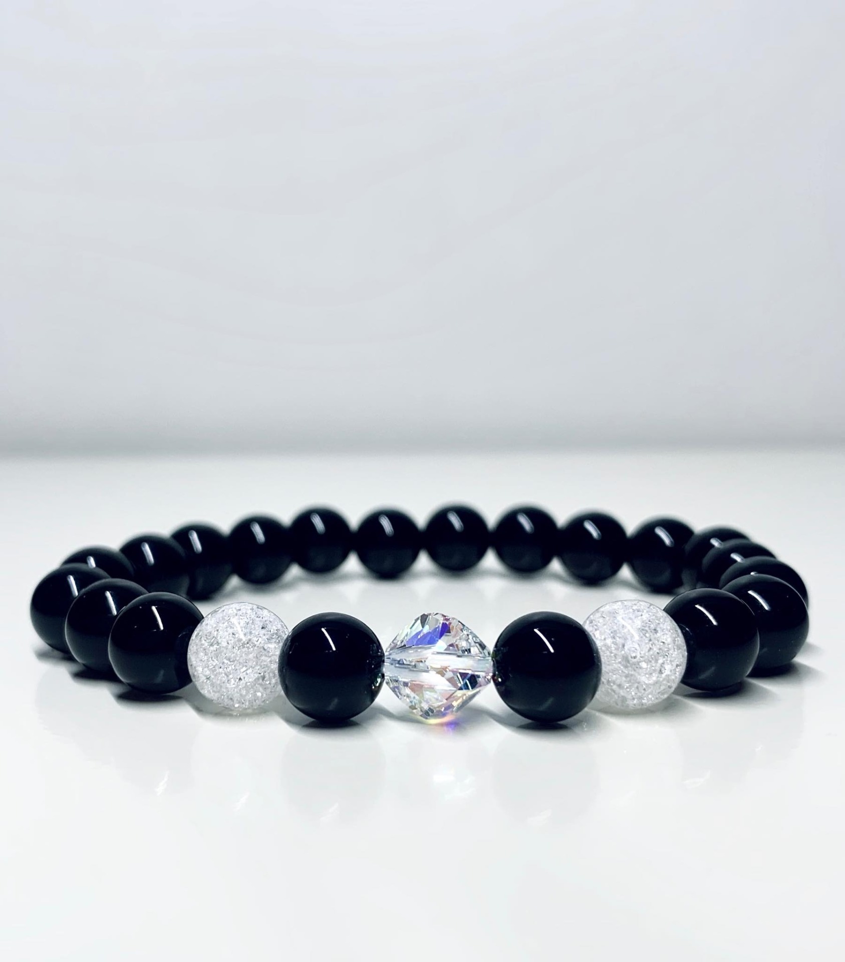 Onix Ásvány karkötő, Swarovski gyönggyel díszítve