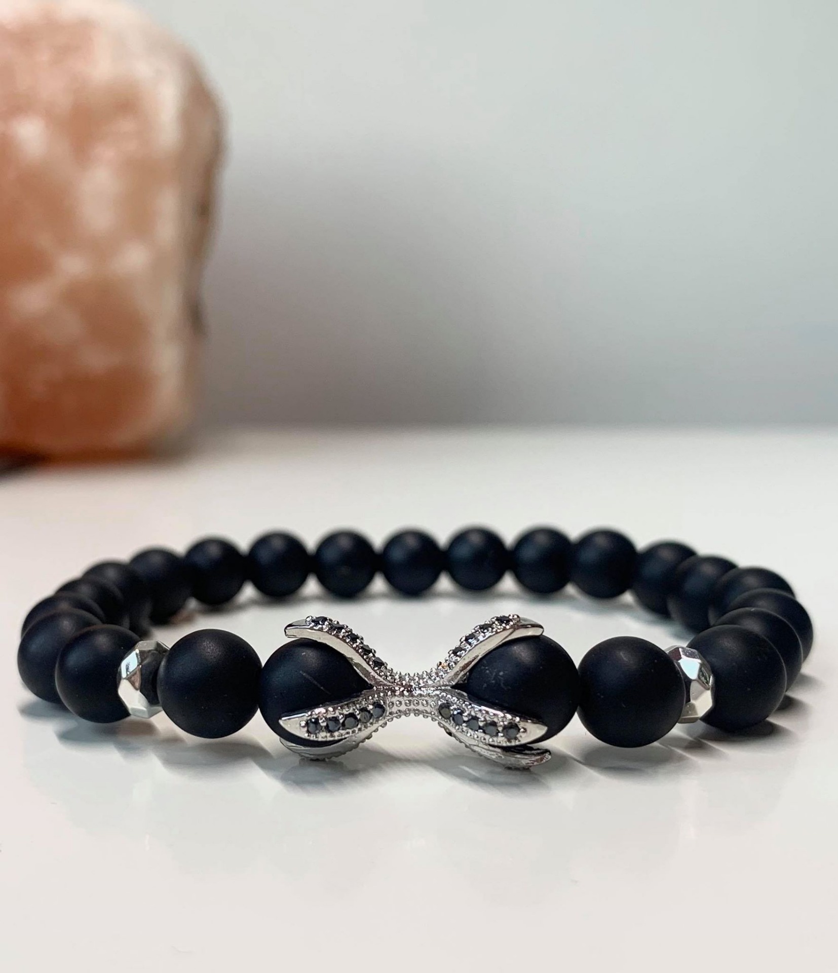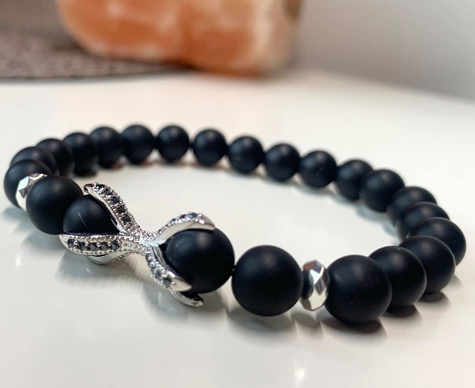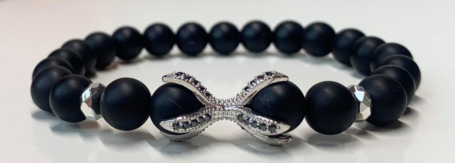 Onix Ásványos Karkötő- Ezüst X Cirkon köves díszítéssel