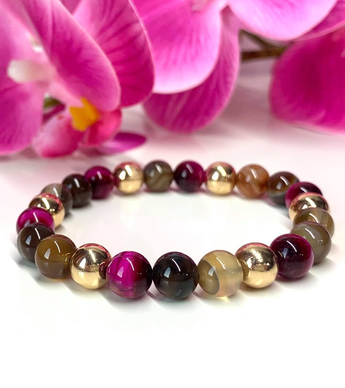 Őszi varázs Tigrisszem, Achát,és Hematit Ásvány Karkötő