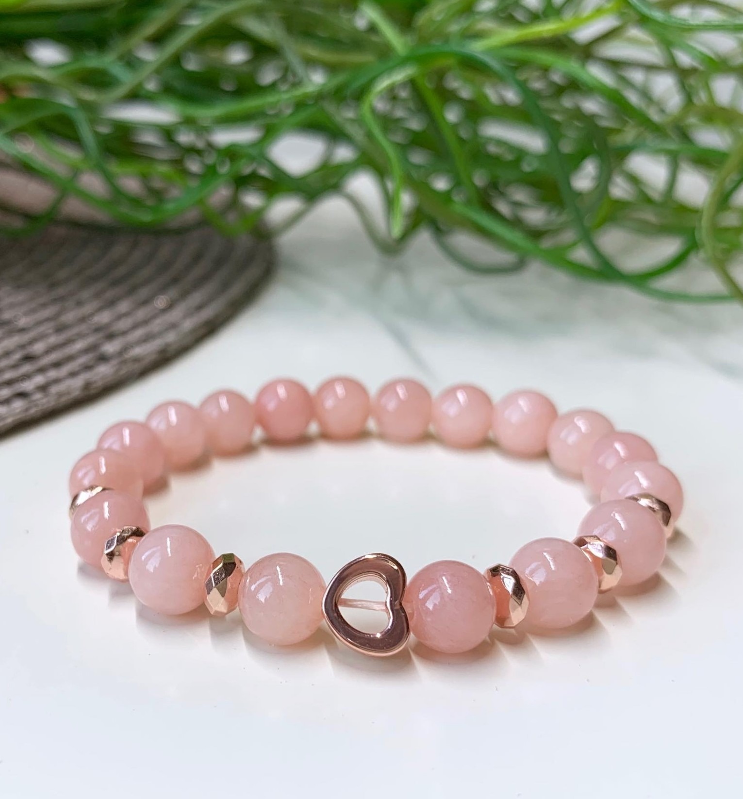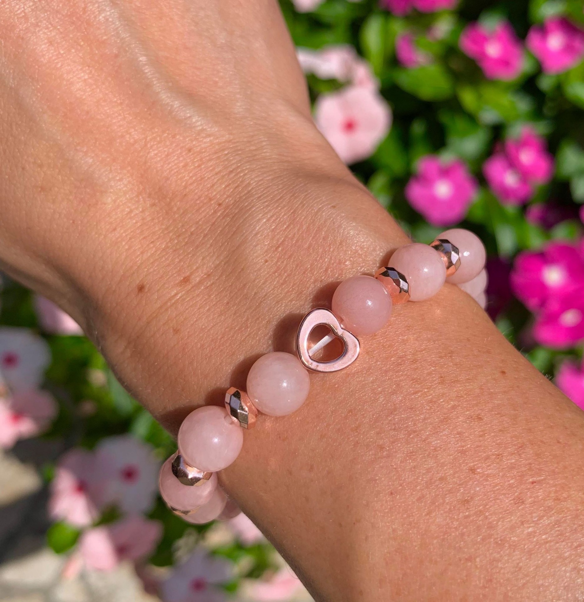 Rose Gold - Szívecskés Mályva Jade Karkötő
