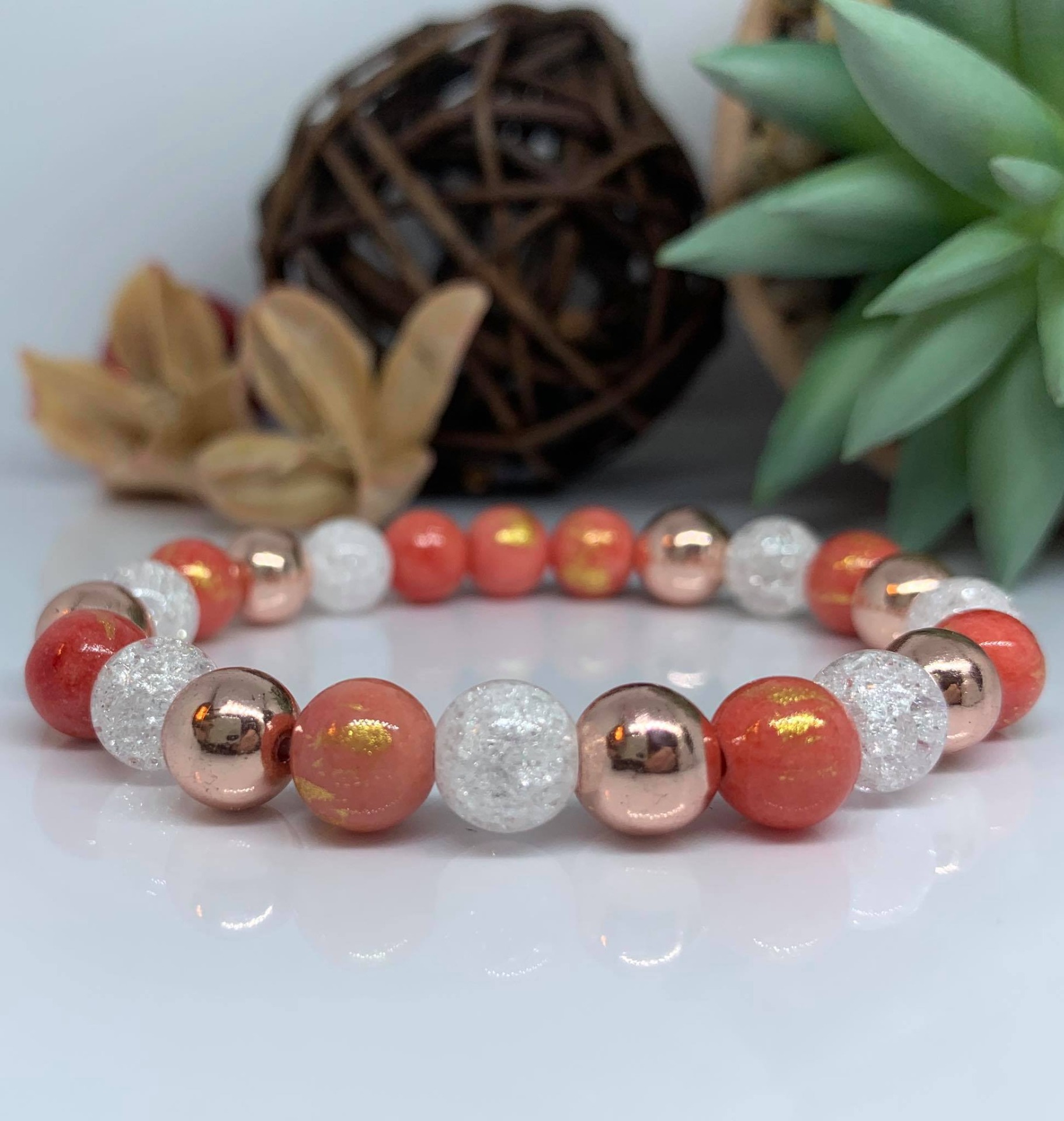 - Gyöngyházfényű akril gyöngy: narancs-arany festett