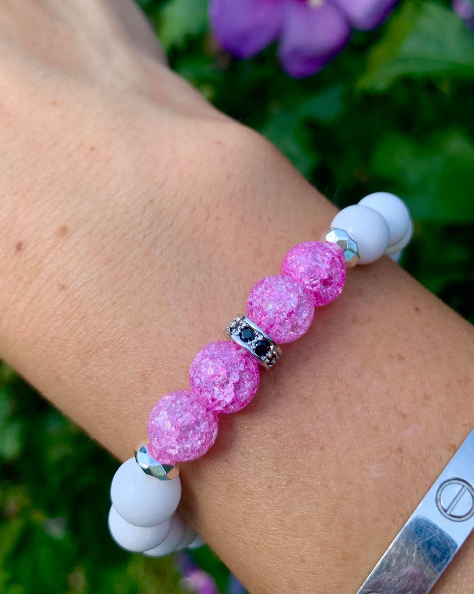 - Díszítés: Hematit fazettált (formázott ezüst) távtartók