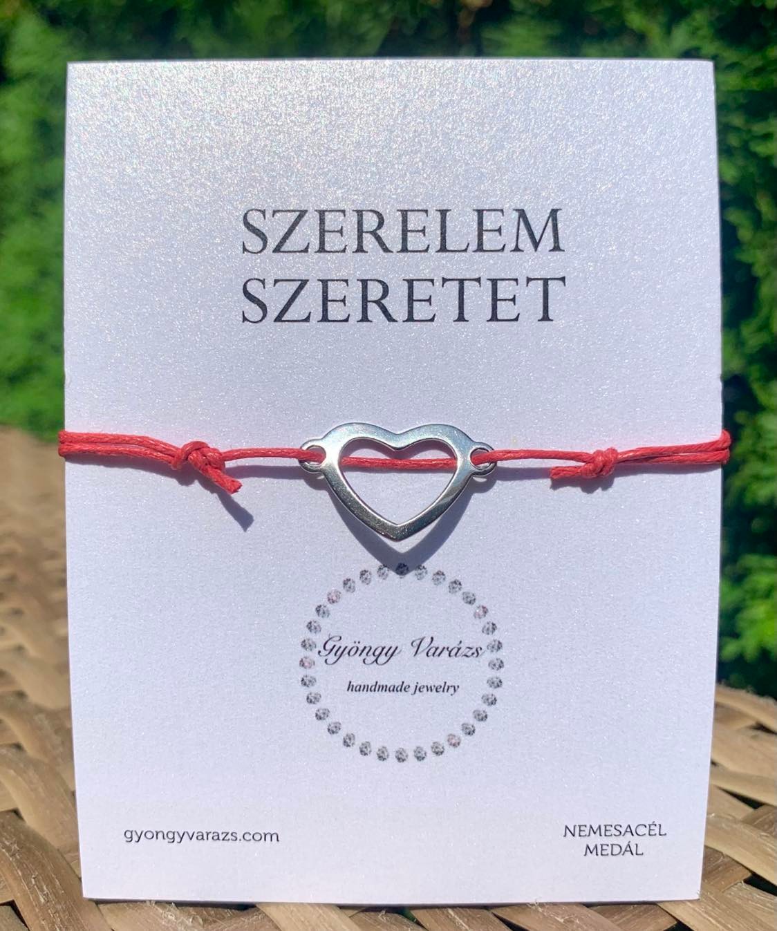 Szív nemesacél medállal, Védelmező- fonal karkötő / Ajándékkártyával