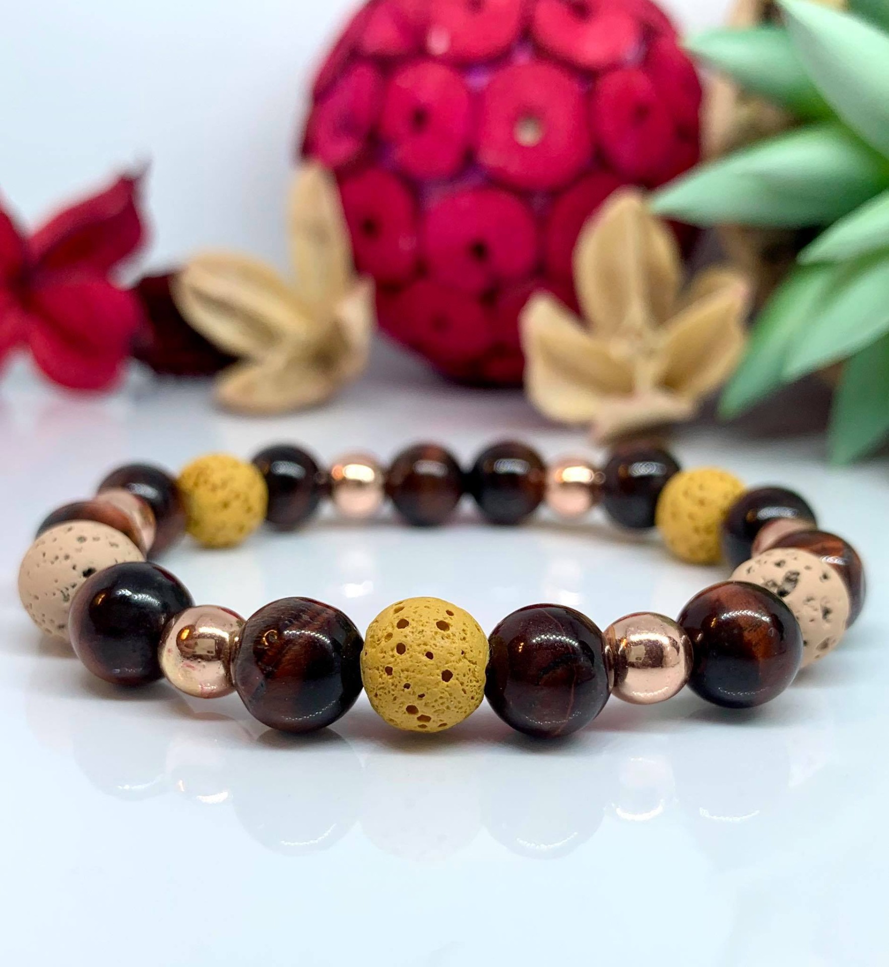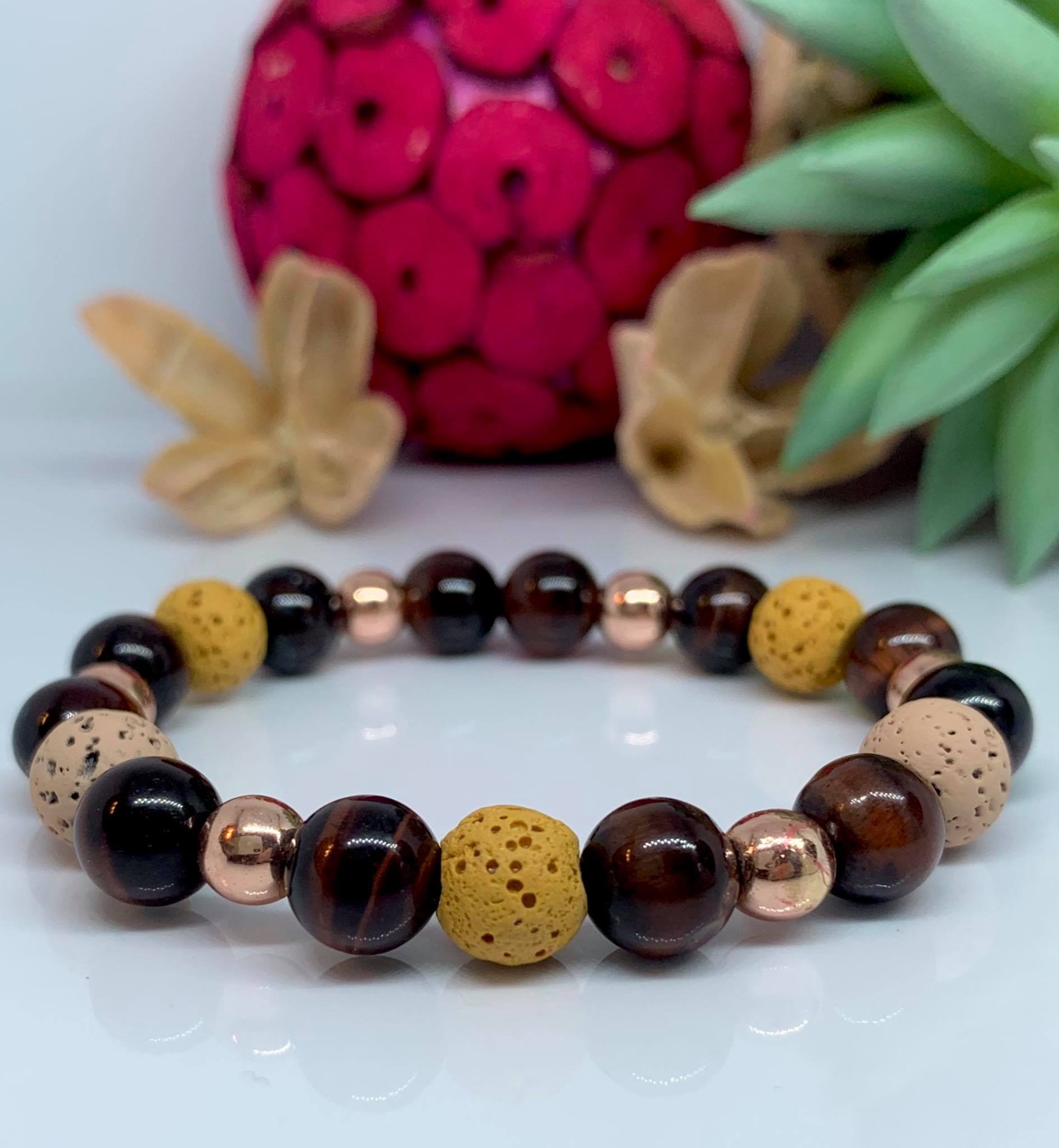 Tigrisszem Ásvány Karkötő, Mustár sárga láva gyöngyökkel díszítve