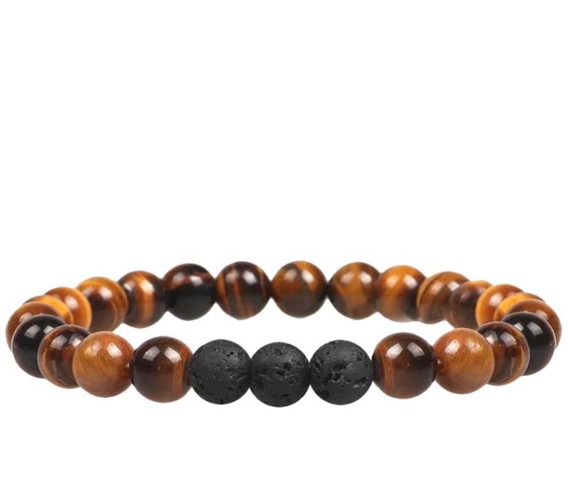 Tigrisszem & Lávakő (középen) Ásvány Karkötő