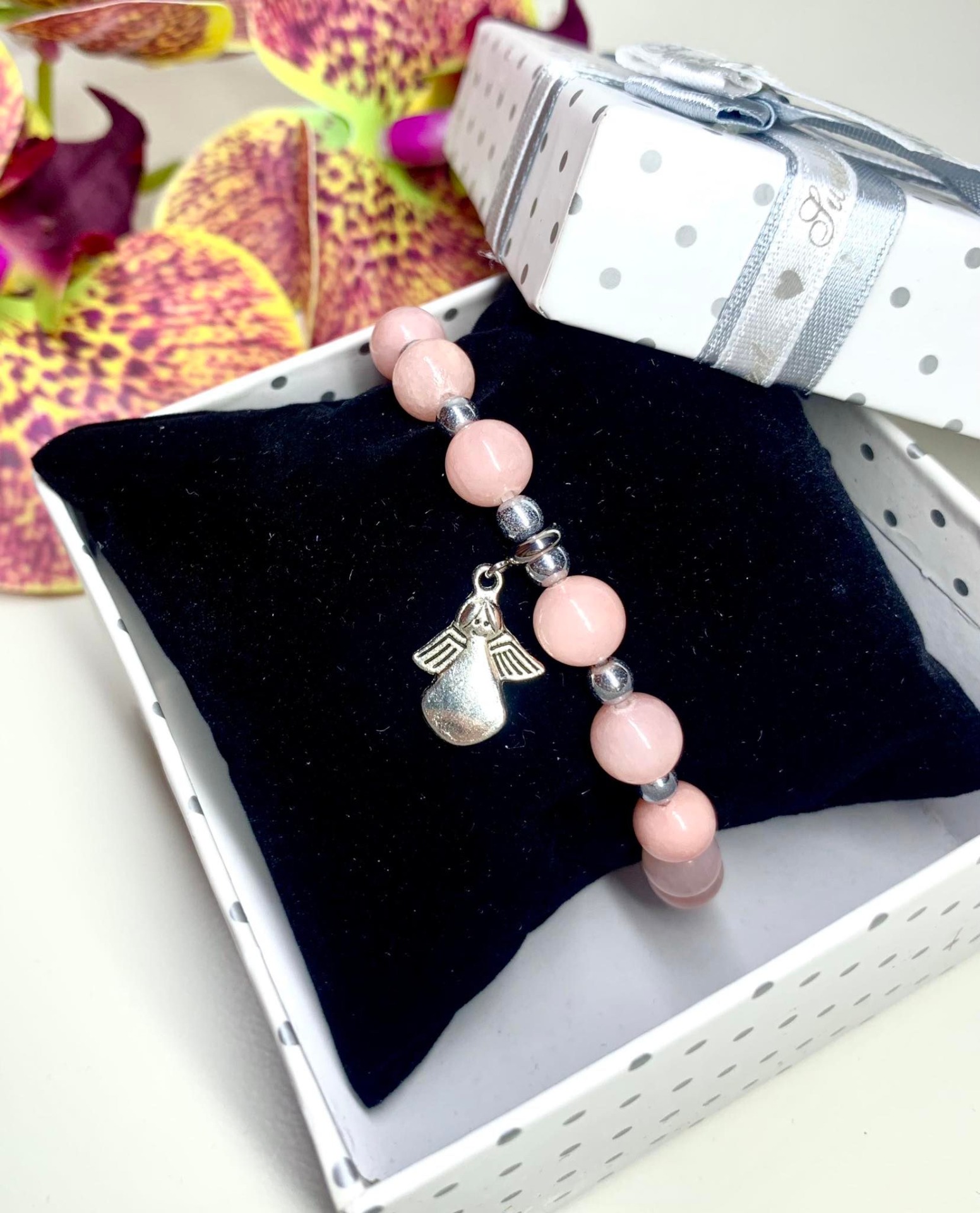 Világos rózsaszín Jade, Angyalkás Női Karkötő