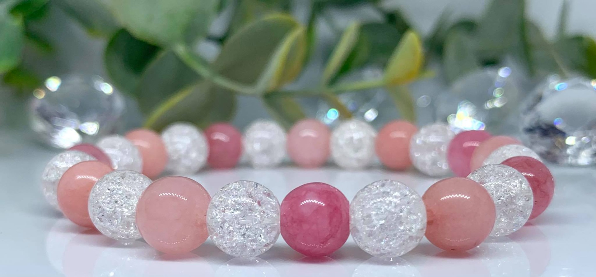 - Ásvány: Jade (Világos rózsaszín,pasztell válogatás ), és Hegyikristály (roppantott)